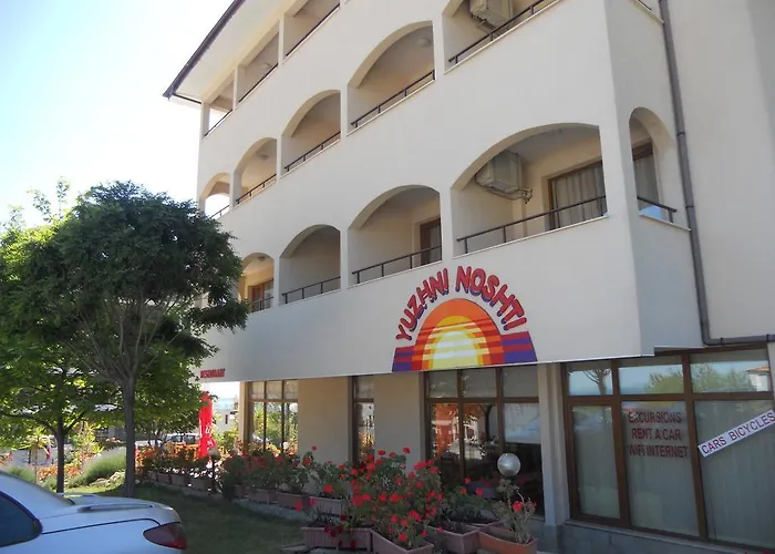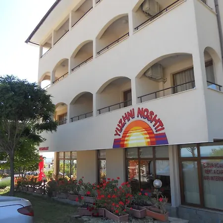 Mindre end 2 km fra Sveti Vlas byens center, Ujni Nosti Semeen Hotel Sveti Vlas huser værelser med udsigt over havet. Overnatningsstedet byder på 20 gæsteværelser, som er indrettet med en balkon, et fladskærms TV med satellitkanaler og røgdetektorer for et behageligt ophold i Sveti Vlas.